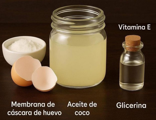 La membrana interna de la cáscara de huevo contiene colágeno, elastina y proteínas naturales que estimulan la regeneración celular y la producción de colágeno, ayudando a reducir arrugas y líneas de expresión.